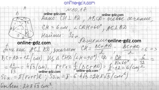 Готовые домашние задания по Геометрии за 11 класс Учебник Мерзляк, Номировский Алгоритм успеха Базовый уровень 2019 - §10. Усечённый конус 10.17