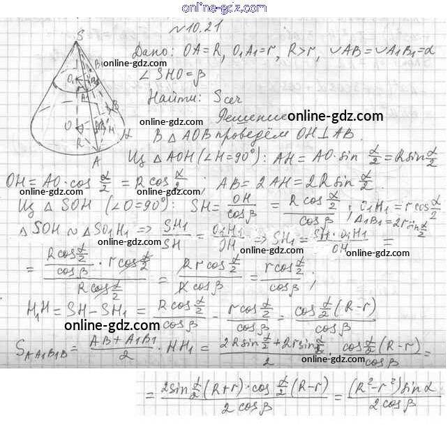 Готовые домашние задания по Геометрии за 11 класс Учебник Мерзляк, Номировский Алгоритм успеха Базовый уровень 2019 - §10. Усечённый конус 10.21