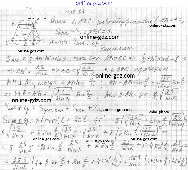 Готовые домашние задания по Геометрии за 11 класс Учебник Мерзляк, Номировский Алгоритм успеха Базовый уровень 2019 - §10. Усечённый конус 10.24