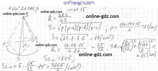 Готовые домашние задания по Геометрии за 11 класс Учебник Мерзляк, Номировский Алгоритм успеха Базовый уровень 2019 - §11. Комбинации конуса и пирамиды 11.15