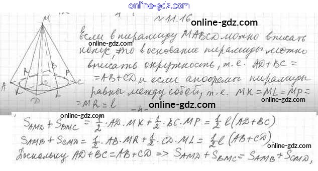Готовые домашние задания по Геометрии за 11 класс Учебник Мерзляк, Номировский Алгоритм успеха Базовый уровень 2019 - §11. Комбинации конуса и пирамиды 11.16
