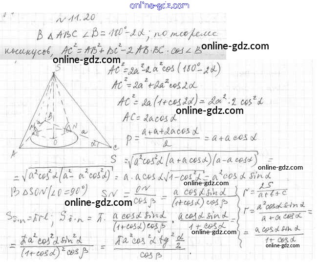 Готовые домашние задания по Геометрии за 11 класс Учебник Мерзляк, Номировский Алгоритм успеха Базовый уровень 2019 - §11. Комбинации конуса и пирамиды 11.20