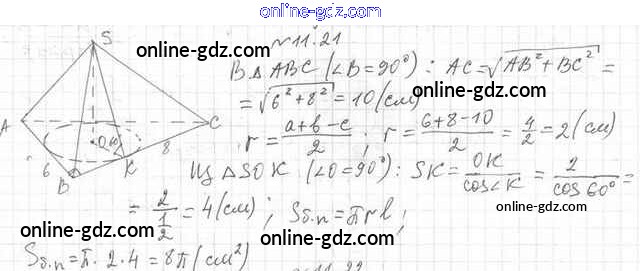 Готовые домашние задания по Геометрии за 11 класс Учебник Мерзляк, Номировский Алгоритм успеха Базовый уровень 2019 - §11. Комбинации конуса и пирамиды 11.21