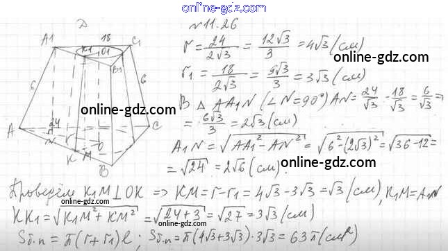 Готовые домашние задания по Геометрии за 11 класс Учебник Мерзляк, Номировский Алгоритм успеха Базовый уровень 2019 - §11. Комбинации конуса и пирамиды 11.26