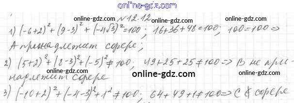 Готовые домашние задания по Геометрии за 11 класс Учебник Мерзляк, Номировский Алгоритм успеха Базовый уровень 2019 - §12. Сфера и шар. Уравнение сферы 12.12