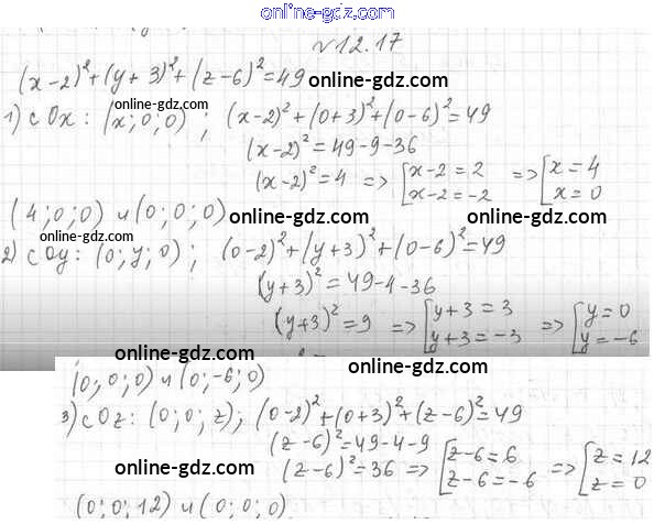 Готовые домашние задания по Геометрии за 11 класс Учебник Мерзляк, Номировский Алгоритм успеха Базовый уровень 2019 - §12. Сфера и шар. Уравнение сферы 12.17