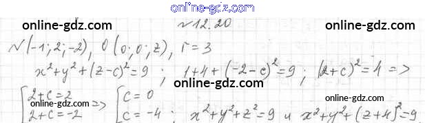 Готовые домашние задания по Геометрии за 11 класс Учебник Мерзляк, Номировский Алгоритм успеха Базовый уровень 2019 - §12. Сфера и шар. Уравнение сферы 12.20