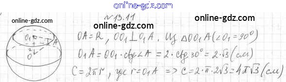 Готовые домашние задания по Геометрии за 11 класс Учебник Мерзляк, Номировский Алгоритм успеха Базовый уровень 2019 - §13. Взаимное расположение сферы и плоскости 13.11