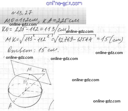 Готовые домашние задания по Геометрии за 11 класс Учебник Мерзляк, Номировский Алгоритм успеха Базовый уровень 2019 - §13. Взаимное расположение сферы и плоскости 13.27