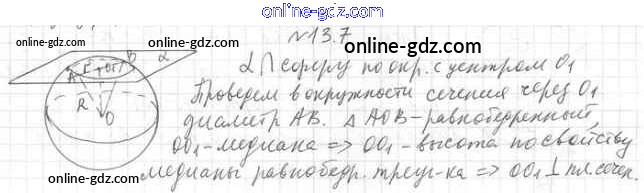 Готовые домашние задания по Геометрии за 11 класс Учебник Мерзляк, Номировский Алгоритм успеха Базовый уровень 2019 - §13. Взаимное расположение сферы и плоскости 13.7