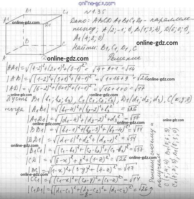 Готовые домашние задания по Геометрии за 11 класс Учебник Мерзляк, Номировский Алгоритм успеха Углубленный уровень 2019 - §1. Декартовы координаты точки в пространстве 1.35