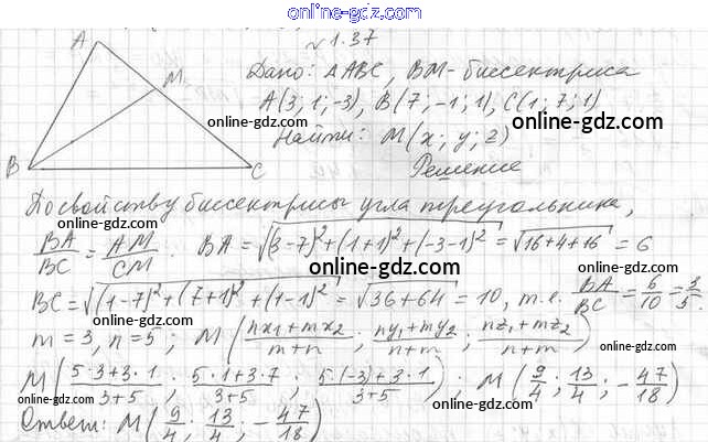 Готовые домашние задания по Геометрии за 11 класс Учебник Мерзляк, Номировский Алгоритм успеха Углубленный уровень 2019 - §1. Декартовы координаты точки в пространстве 1.37