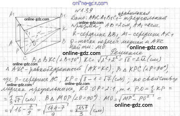 Готовые домашние задания по Геометрии за 11 класс Учебник Мерзляк, Номировский Алгоритм успеха Углубленный уровень 2019 - §1. Декартовы координаты точки в пространстве 1.39
