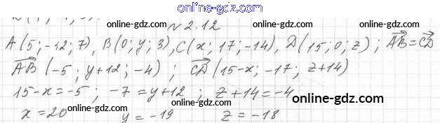 Готовые домашние задания по Геометрии за 11 класс Учебник Мерзляк, Номировский Алгоритм успеха Углубленный уровень 2019 - §2. Векторы в пространстве 2.12