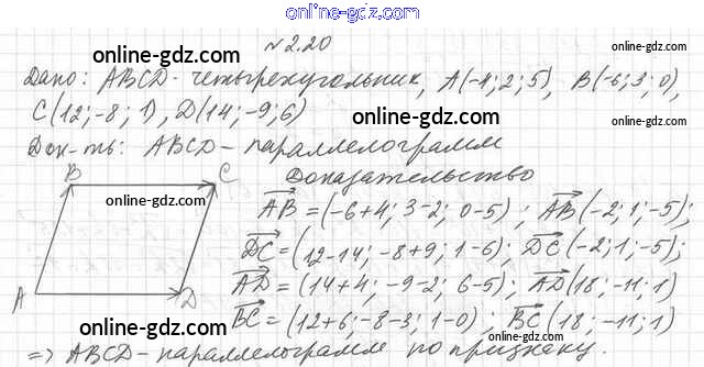 Готовые домашние задания по Геометрии за 11 класс Учебник Мерзляк, Номировский Алгоритм успеха Углубленный уровень 2019 - §2. Векторы в пространстве 2.20