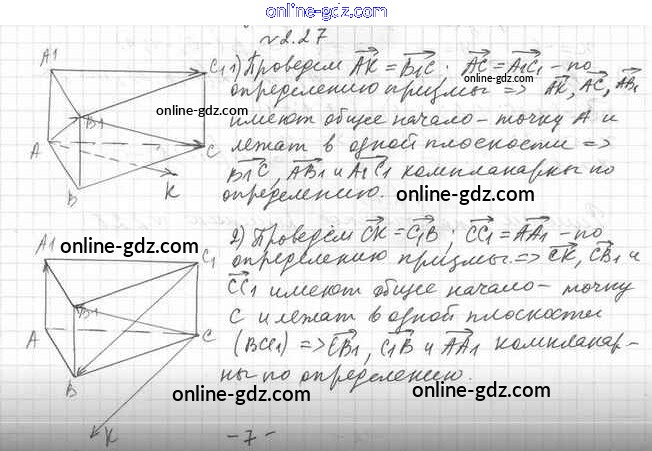 Готовые домашние задания по Геометрии за 11 класс Учебник Мерзляк, Номировский Алгоритм успеха Углубленный уровень 2019 - §2. Векторы в пространстве 2.27