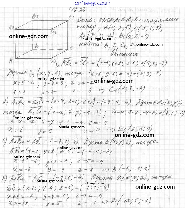 Готовые домашние задания по Геометрии за 11 класс Учебник Мерзляк, Номировский Алгоритм успеха Углубленный уровень 2019 - §2. Векторы в пространстве 2.28