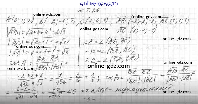 Готовые домашние задания по Геометрии за 11 класс Учебник Мерзляк, Номировский Алгоритм успеха Углубленный уровень 2019 - §5. Скалярное произведение векторов 5.26