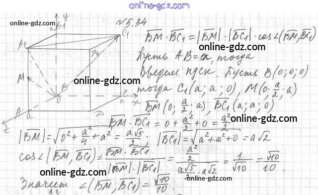 Готовые домашние задания по Геометрии за 11 класс Учебник Мерзляк, Номировский Алгоритм успеха Углубленный уровень 2019 - §5. Скалярное произведение векторов 5.34