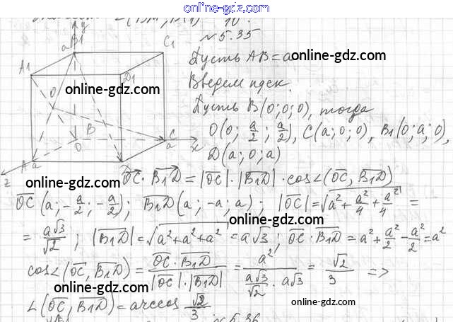 Готовые домашние задания по Геометрии за 11 класс Учебник Мерзляк, Номировский Алгоритм успеха Углубленный уровень 2019 - §5. Скалярное произведение векторов 5.35