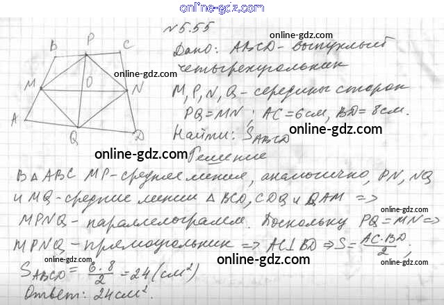 Готовые домашние задания по Геометрии за 11 класс Учебник Мерзляк, Номировский Алгоритм успеха Углубленный уровень 2019 - §5. Скалярное произведение векторов 5.55