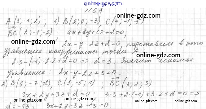 Готовые домашние задания по Геометрии за 11 класс Учебник Мерзляк, Номировский Алгоритм успеха Углубленный уровень 2019 - §6. Уравнение плоскости 6.1
