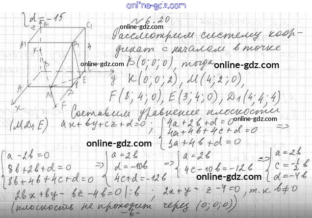 Готовые домашние задания по Геометрии за 11 класс Учебник Мерзляк, Номировский Алгоритм успеха Углубленный уровень 2019 - §6. Уравнение плоскости 6.20
