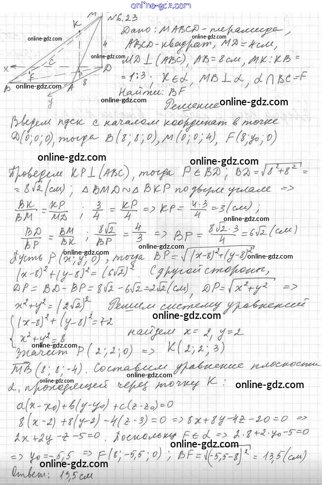 Готовые домашние задания по Геометрии за 11 класс Учебник Мерзляк, Номировский Алгоритм успеха Углубленный уровень 2019 - §6. Уравнение плоскости 6.23