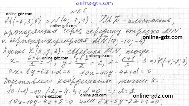 Готовые домашние задания по Геометрии за 11 класс Учебник Мерзляк, Номировский Алгоритм успеха Углубленный уровень 2019 - §6. Уравнение плоскости 6.6