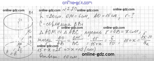 Готовые домашние задания по Геометрии за 11 класс Учебник Мерзляк, Номировский Алгоритм успеха Углубленный уровень 2019 - §7. Цилиндр 7.20