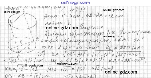 Готовые домашние задания по Геометрии за 11 класс Учебник Мерзляк, Номировский Алгоритм успеха Углубленный уровень 2019 - §7. Цилиндр 7.31