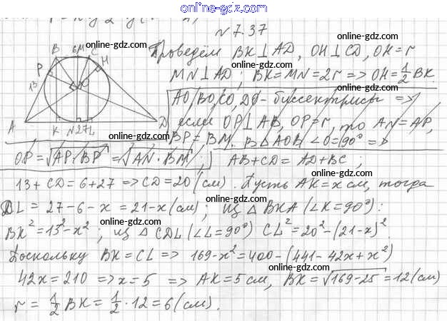 Готовые домашние задания по Геометрии за 11 класс Учебник Мерзляк, Номировский Алгоритм успеха Углубленный уровень 2019 - §7. Цилиндр 7.37