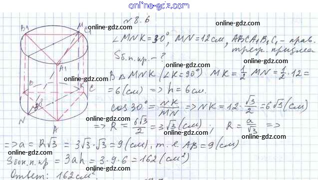 Готовые домашние задания по Геометрии за 11 класс Учебник Мерзляк, Номировский Алгоритм успеха Углубленный уровень 2019 - §8. Комбинации цилиндра и призмы 8.6