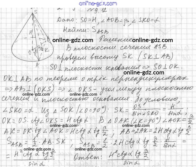 Готовые домашние задания по Геометрии за 11 класс Учебник Мерзляк, Номировский Алгоритм успеха Углубленный уровень 2019 - §9. Конус 9.12