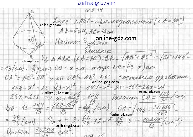 Готовые домашние задания по Геометрии за 11 класс Учебник Мерзляк, Номировский Алгоритм успеха Углубленный уровень 2019 - §9. Конус 9.14