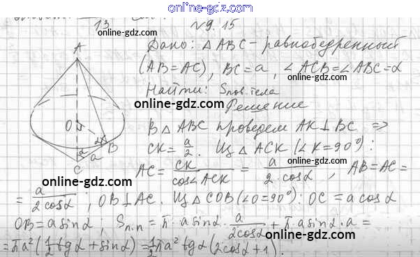 Готовые домашние задания по Геометрии за 11 класс Учебник Мерзляк, Номировский Алгоритм успеха Углубленный уровень 2019 - §9. Конус 9.15