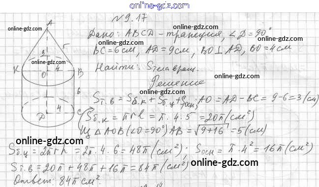 Готовые домашние задания по Геометрии за 11 класс Учебник Мерзляк, Номировский Алгоритм успеха Углубленный уровень 2019 - §9. Конус 9.17