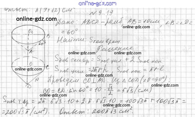 Готовые домашние задания по Геометрии за 11 класс Учебник Мерзляк, Номировский Алгоритм успеха Углубленный уровень 2019 - §9. Конус 9.19