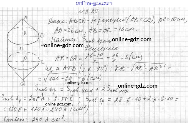 Готовые домашние задания по Геометрии за 11 класс Учебник Мерзляк, Номировский Алгоритм успеха Углубленный уровень 2019 - §9. Конус 9.20