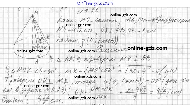 Готовые домашние задания по Геометрии за 11 класс Учебник Мерзляк, Номировский Алгоритм успеха Углубленный уровень 2019 - §9. Конус 9.26