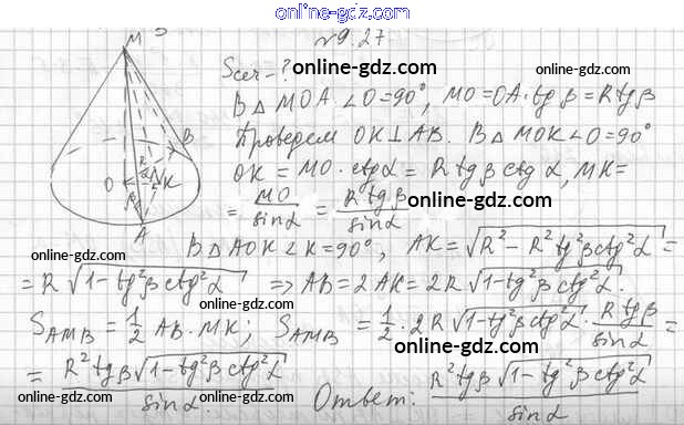 Готовые домашние задания по Геометрии за 11 класс Учебник Мерзляк, Номировский Алгоритм успеха Углубленный уровень 2019 - §9. Конус 9.27