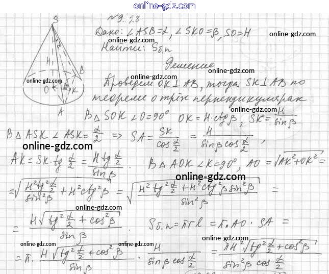 Готовые домашние задания по Геометрии за 11 класс Учебник Мерзляк, Номировский Алгоритм успеха Углубленный уровень 2019 - §9. Конус 9.28
