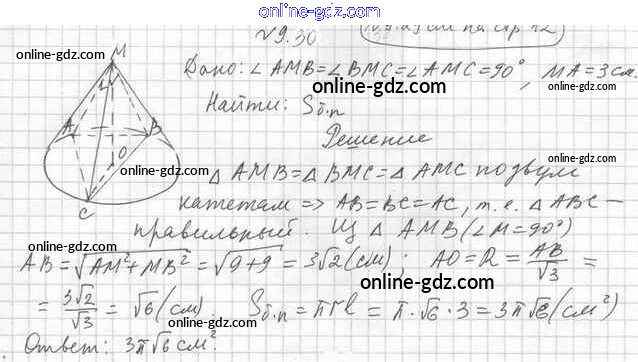 Готовые домашние задания по Геометрии за 11 класс Учебник Мерзляк, Номировский Алгоритм успеха Углубленный уровень 2019 - §9. Конус 9.30