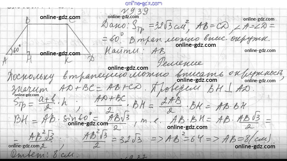 Готовые домашние задания по Геометрии за 11 класс Учебник Мерзляк, Номировский Алгоритм успеха Углубленный уровень 2019 - §9. Конус 9.39