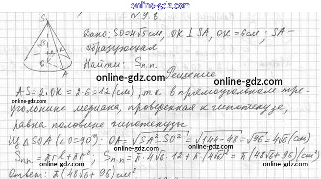 Готовые домашние задания по Геометрии за 11 класс Учебник Мерзляк, Номировский Алгоритм успеха Углубленный уровень 2019 - §9. Конус 9.8