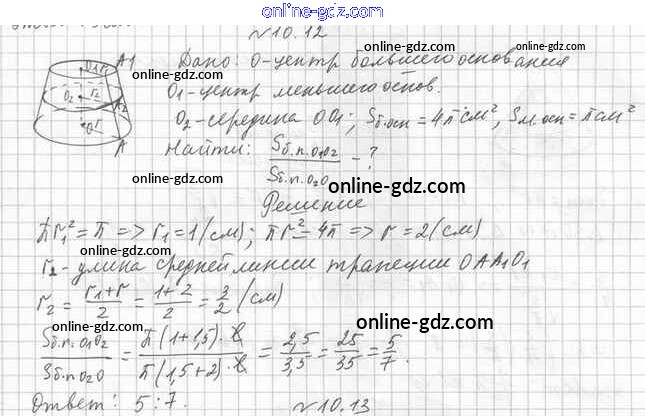 Готовые домашние задания по Геометрии за 11 класс Учебник Мерзляк, Номировский Алгоритм успеха Углубленный уровень 2019 - §10. Усечённый конус 10.12