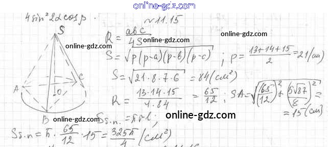 Готовые домашние задания по Геометрии за 11 класс Учебник Мерзляк, Номировский Алгоритм успеха Углубленный уровень 2019 - §11. Комбинации конуса и пирамиды 11.15