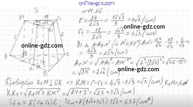 Готовые домашние задания по Геометрии за 11 класс Учебник Мерзляк, Номировский Алгоритм успеха Углубленный уровень 2019 - §11. Комбинации конуса и пирамиды 11.26
