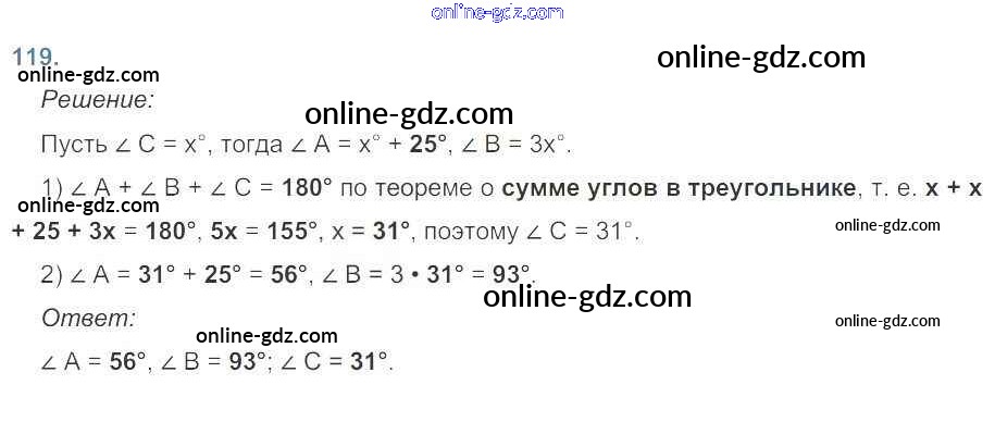 Готовые домашние задания по Геометрии за 7 класс Рабочая тетрадь Атанасян, Бутузов 2015 - Задачи 119