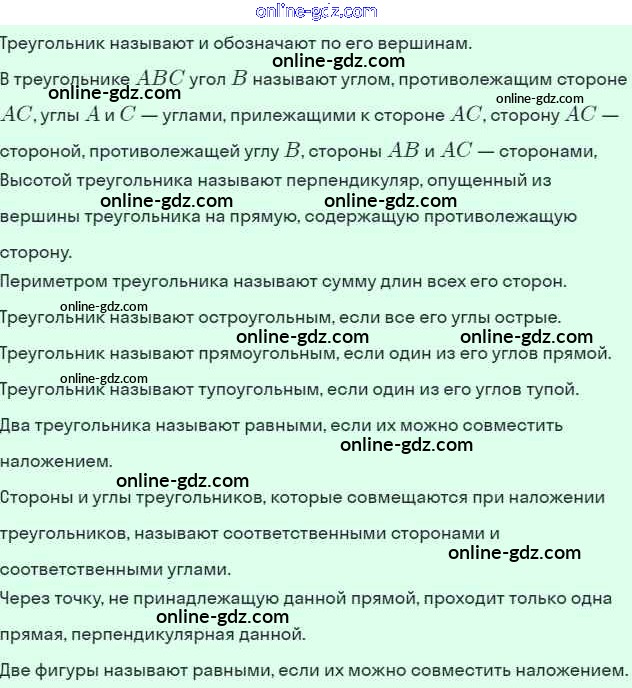 § 7. Равные треугольники. Высота, медиана, биссектриса треугольника